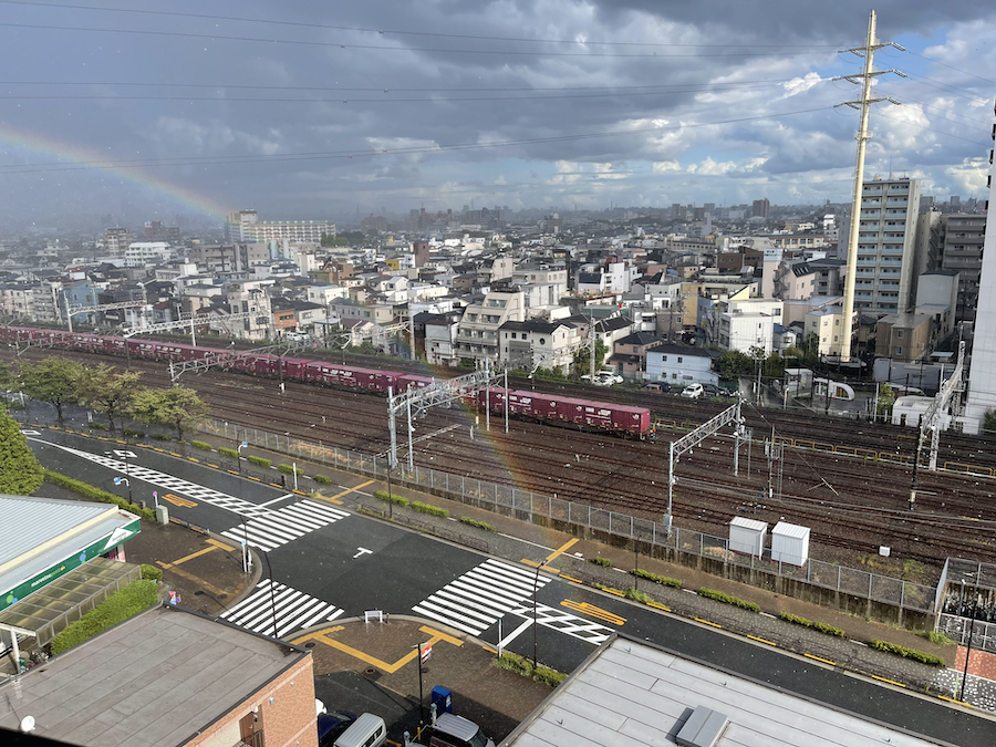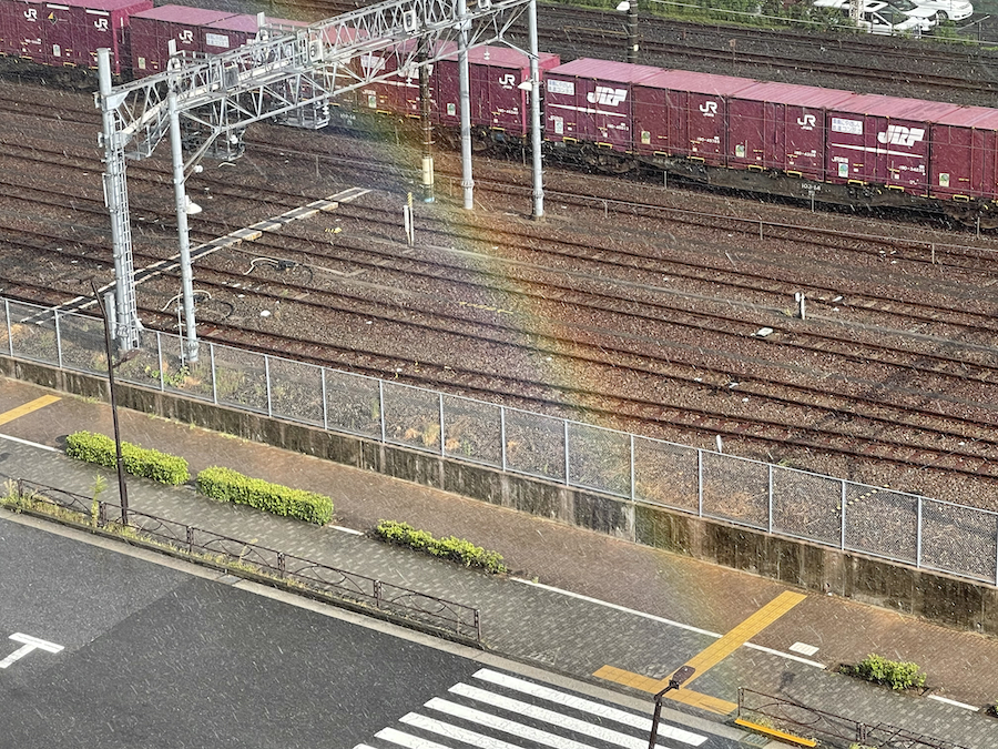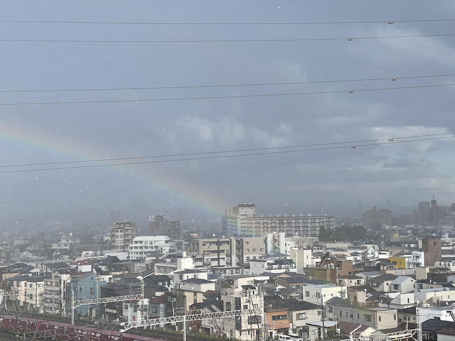 9月9日のゲリラ豪雨で綺麗な虹が出ました。気がつきスマホを向けた頃には消えかかってまして撮影し終わるタイミングで消滅。