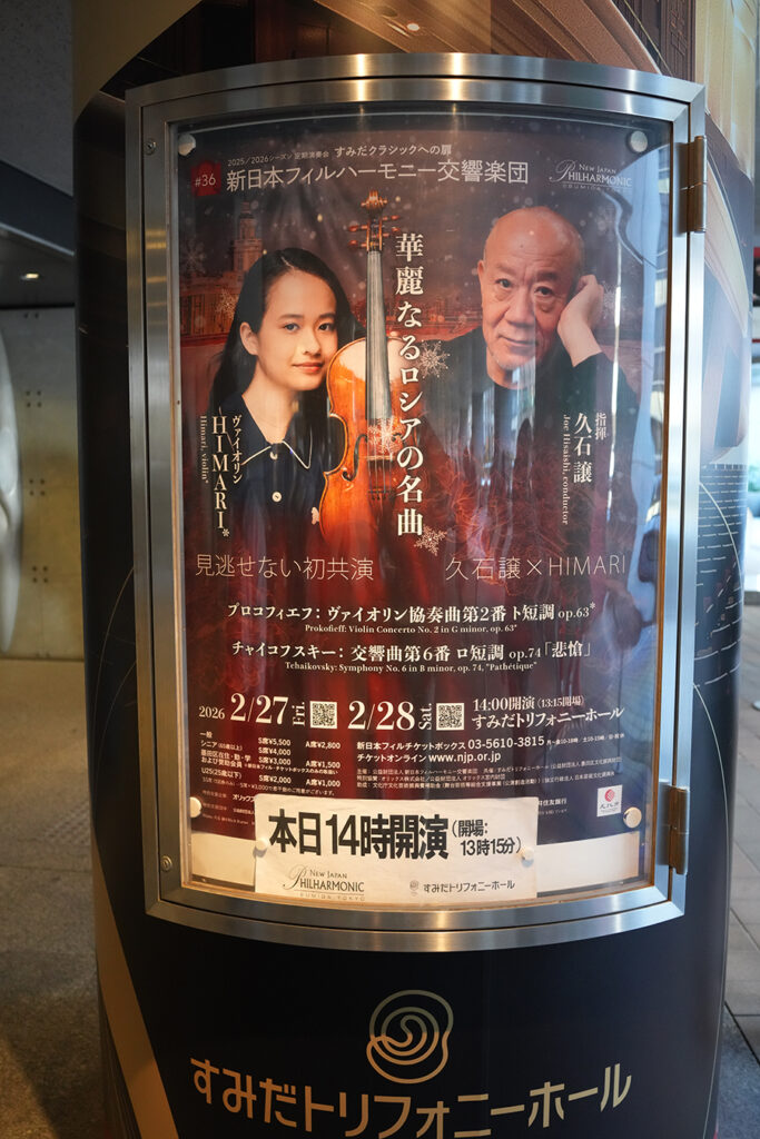 昨日2月28日すみだとリフォニーホールへ久石譲指揮新日本フィルハーモニー バイオリンHIMARIを見に行きました。